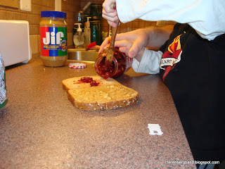 I think that I have made it pretty clear on this blog that I am all about teaching the boy to fend for himself, and more especially, to do things that are beneficial to me! After seeing a post on my cousins blog about her son making his first Peanut butter and Jelly Sandwich, Owen was anxious to give it a try, so we had a little lesson!