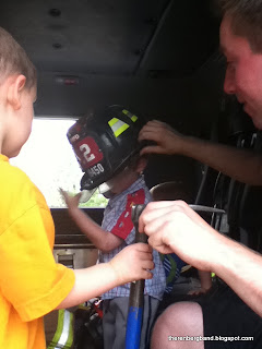The local fire and police departments had a night out last month, and so Beki took the boy down to meet the firemen. I stayed home and worked on school stuff: